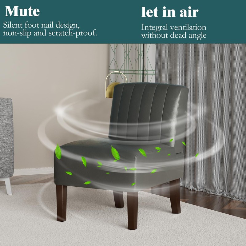 Armless Accent Chairs Upholstered Dining Chairs Living Room Chairs with Solid Wood Legs Leather Reading Chair for Adults Comfy Chair for Bedroom Vanity Kitchen (Asphalt)