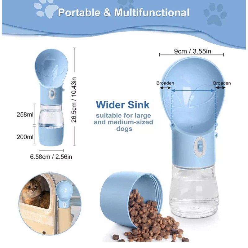 2 in 1 portable cat and dog water bottle with a food container and a dog water bottle dispenser is a pet multi-functional water bottle.