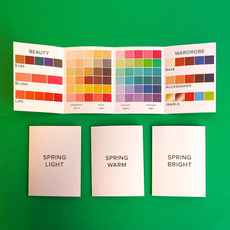 - With a preview of: 60 representative colours of each season/subgroup, 13 beauty colours: for eyes, blush and lips, 15 colours for the wardrobe: base, accessories and jewellery.