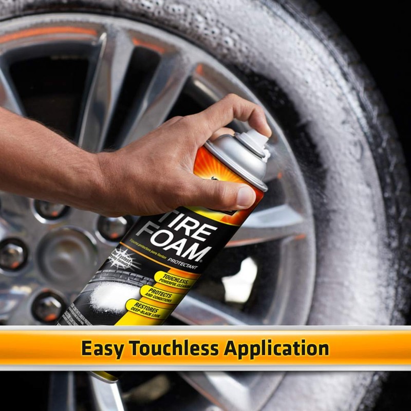 For generations, Armor All has been a pioneer in tire care, offering trusted products that enhance, protect, and preserve your tires’ natural beauty. Tire Foam Protectant not only cleans your tires, it restores their natural, deep black appearance. Watch it working, as the intense foaming action lifts away tough dirt. Within minutes, our proprietary blend of nourishing conditioners penetrates into your tires, restoring their like-new appearance and bringing out their deep, natural colors.