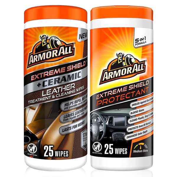 Armor All Ceramic Car Leather Cleaning Wipes, Use on Heated Seats and Leather Surfaces, Includes Ceramic Leather and Extreme Protectant Wipes - 2 Count