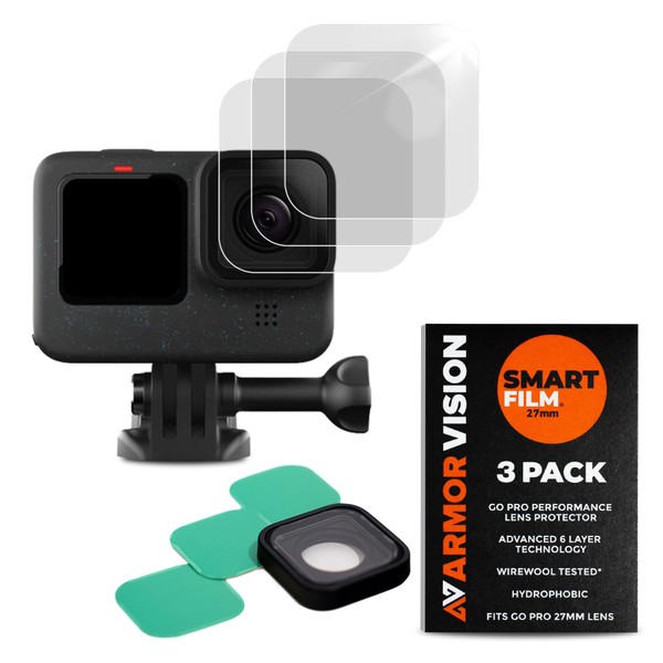 Armor Vision 27mm Smart Film Go Pro Camera Lens Cover Protector - Hydrophobic, Scratch Resistant & Universal Fit - Advanced 6-Layer Technology (Pack of 3)