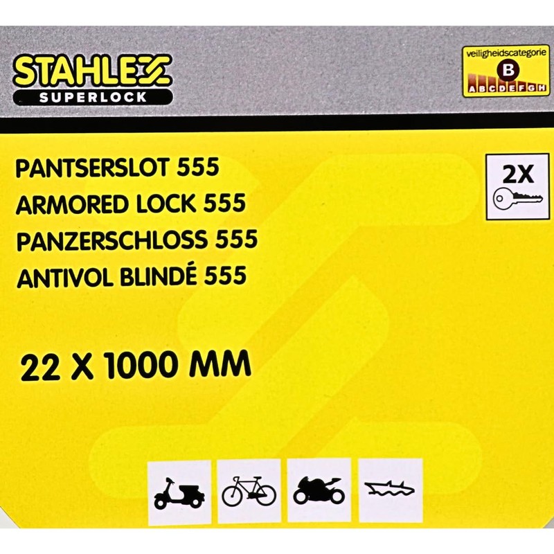 Armoured Lock 555-22 x 1000 mm in Red | Robust Hardened Bicycle Lock with Canvas Protective Cover and Key | Steel Theft Protection for Maximum Security