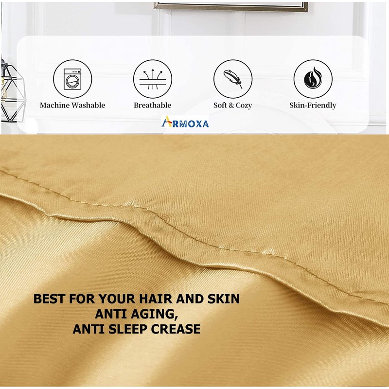 ARMOXA Premium Silk Satin Pillow Cover for Hair and Skin with Envelope Closure|3 Piece Satin Silk Soft Scrunchies Free for Women Stylish| Set of 2 Golden Pillow Case | Standard Size
