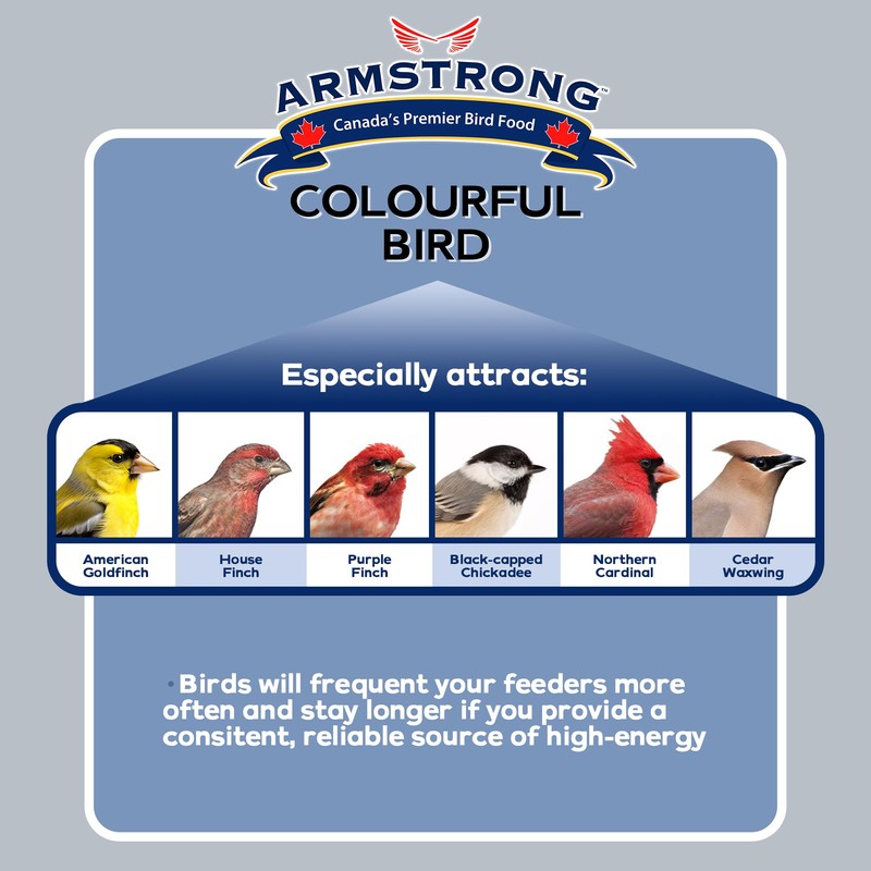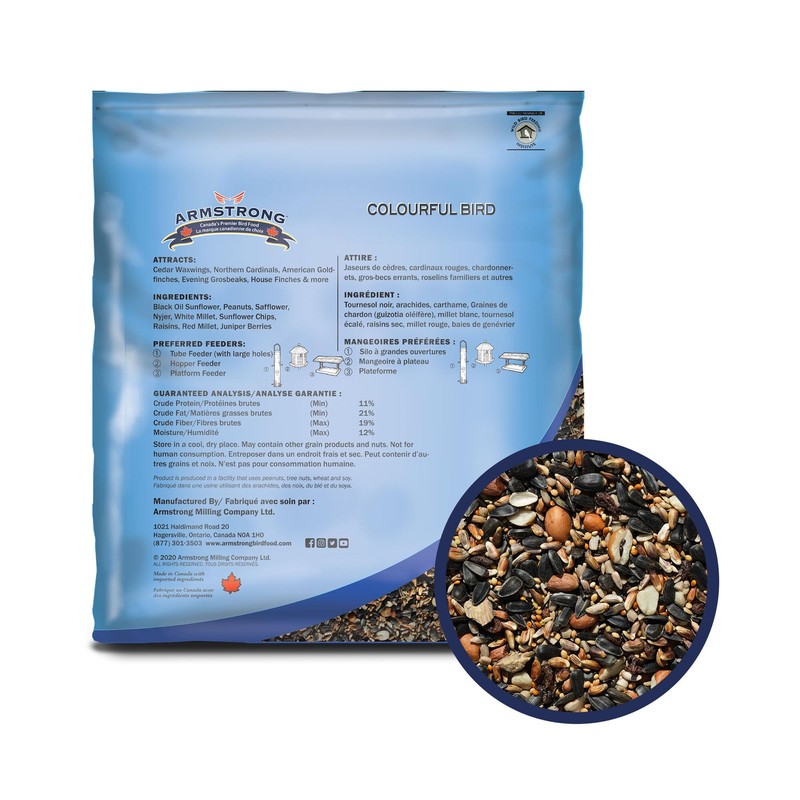 Armstrong Wild Bird Food Colourful Blend, 8 Pounds - with Black Oil Sunflower, Peanuts, Safflower, Nyjer, Berries and Raisins for Finches, Mourning Doves and Chickadees for Outside Feeders