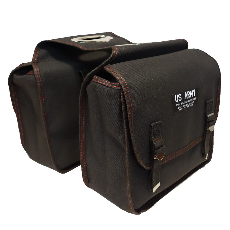 Army Bag ■ US ARMY Side Bag (Army Saddlebag) Black/Red Stitching ARMY(BK)