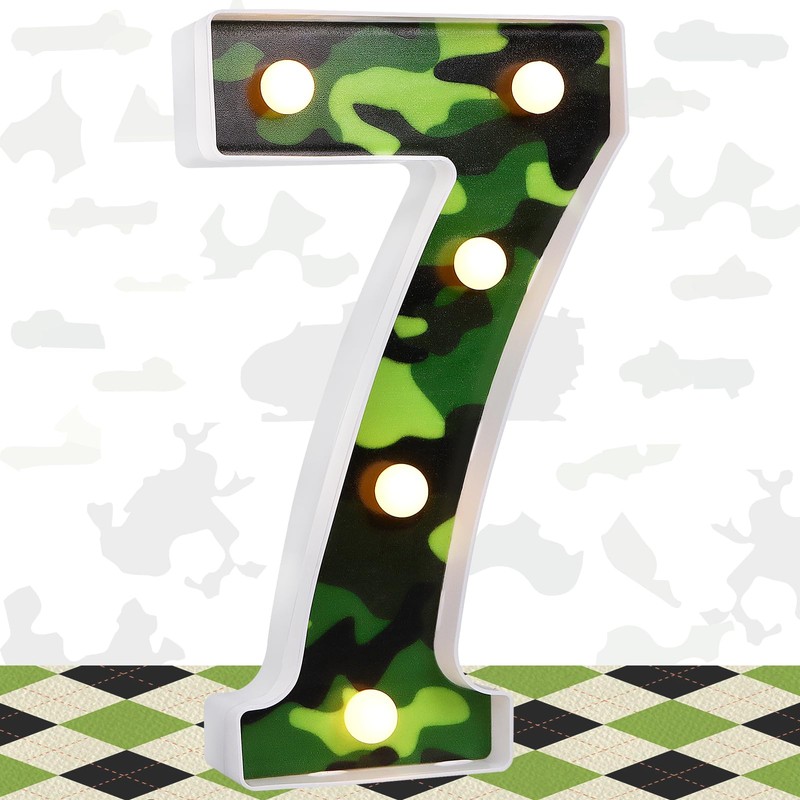 Army Birthday Party Decorations Camo Light UP Numbers Decor Camo 7th Birthday Candles LED Light Number Sign Camouflage Theme Party Supplies for Army Military Birthday Camouflage Motif Hunter Themed