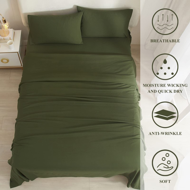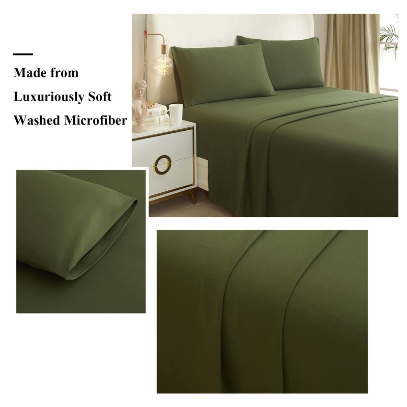- 【EXTRA SOFT】Our twin sheet set was made of 100% washed microfiber material,which offers strength and durability with exceptional softness.Experience the ultimate comfort and soft touch with our bed sheets, sleep better and wake up each morning feeling refreshed,this washed microfiber sheets is tronger than cotton with ultra-tight knit,these luxury army green bed sheets won't rip or tear after washing.keep you cool,comfortable,and breathable in all seasons.