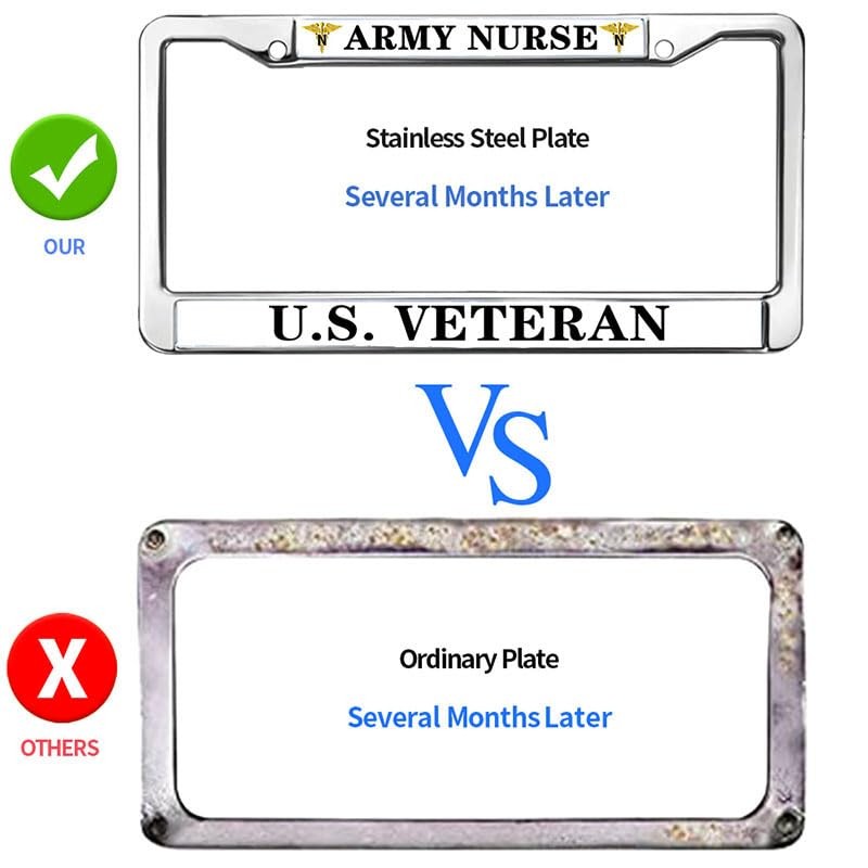 Army Nurse US Veteran Metal Chrome Auto License Plate Cover,Veteran US Army Nurse Stainless Steel Car Licence Plate Covers