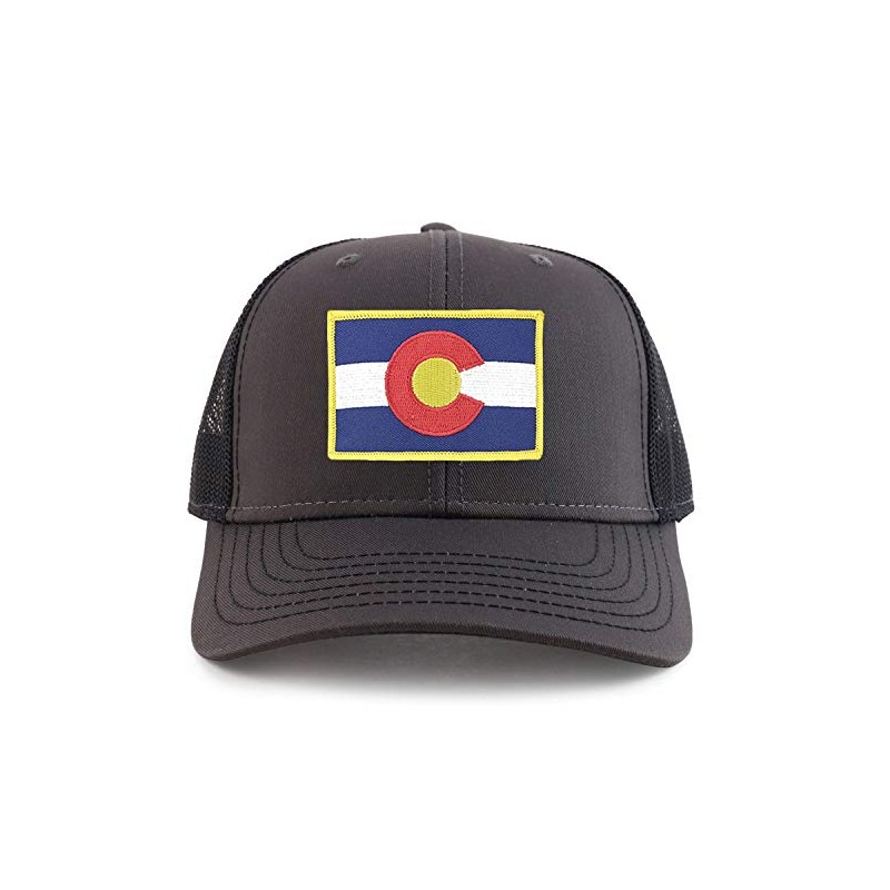 Armycrew Colorado State Flag Patch 6 Panel Two Tone Mesh Back Trucker Cap - Charcoal Black