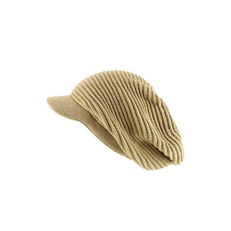 Armycrew Deep Crown Slouchy 100% Cotton RGY Rasta Visored Beanie Hat - Beige