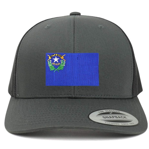Armycrew Oversize XXL New Nevada State Flag Patch Retro Trucker Mesh Cap - Charcoal