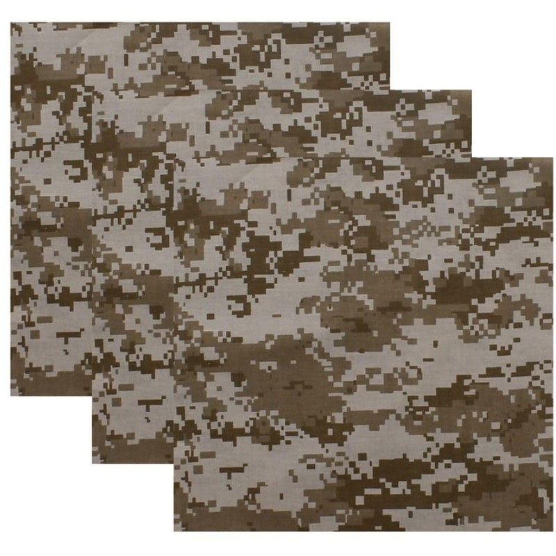 ARMYU Camouflage Military Bandana (22" x 22"), Camo Head Scarf Do-rag 100% Cotton Bandanna 3 PACK, Desert Digital Camo