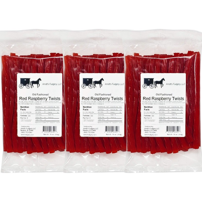 Arndts Fudgery Amish Licorice Twists - Three 16 Oz Pkgs (Red Raspberry)