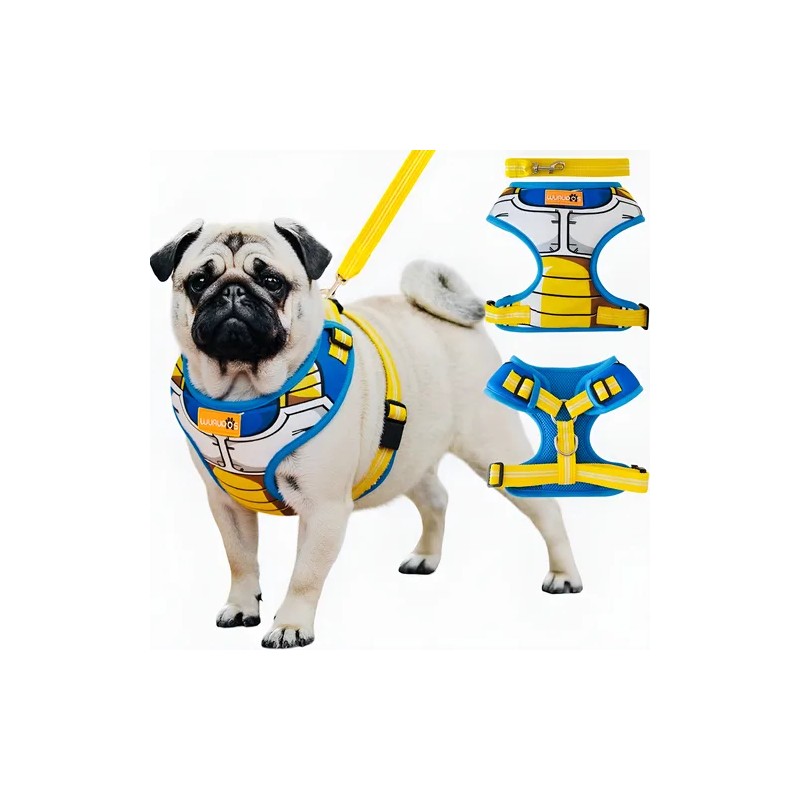 Lo que tienes que saber de este producto Para mascota con 68cm de circunferencia mínima del pecho y 99cm máxima. Fabricado en Poliéster. Es ajustable. Con gancho para correa. Incluye correa.