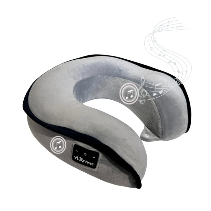 ARniwer Bluetooth Music Semicircular 360° Support Neck Pillow Plus Wireless Bluetooth speaker with crystal clear stereo cradle sound, powerful bass, built-in HD speaker Suitable on the airplane, on the bus, on the train, in the car, in the office. Or when you are sleeping, resting, napping, and outdoor camping. The best travel essentials.