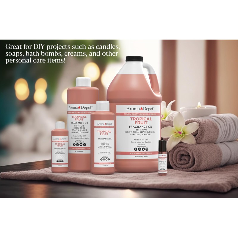 Aroma Depot Tropical Fruit 4 fl oz. Fragrance Oil I Perfume I Skin Oil I Scented Oil for DIY Projects Bath Bombs, Body Butters, Creams & Lotions. Works for Diffuser, Burners, or Warmers.