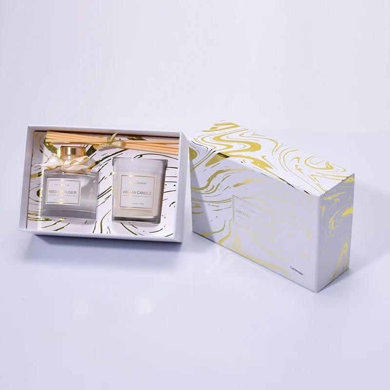 - Set of two higly scented Aroma gift set 100ml air diffuser and 100ml scented candle.