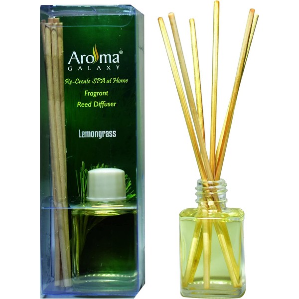 AROMA GALAXY Lemon Grass Scent Reed Diffuser Set/Aroma Reed Diffuser/Scented Reed Diffuser for Offices, Home - 30 ML with 6 Reed Sticks (Lemon Grass Scent) 1 Count (Pack of 1) Transparent