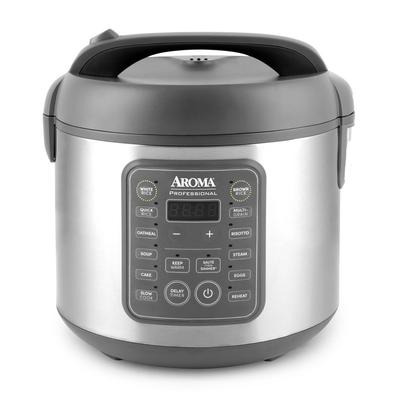 AROMA Professional Digital Rice Cooker, 10-Cup (Uncooked) / 20-Cup (Cooked), Multicooker, Slow Cooker, Steamer, Oatmeal Cooker, Egg Cooker, STS, 5 Qt, Gray, ARC-5200SG