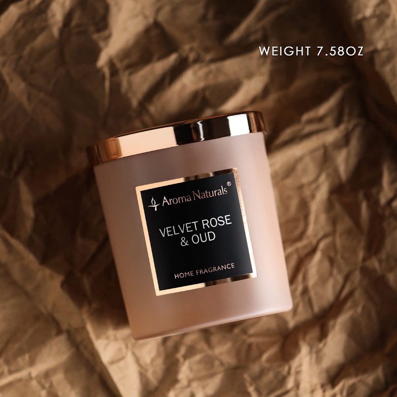 Aroma Naturals Scented Candles, Natural Soy Wax Candles 35 Hours Burning Time, Home Fragrance Decor Gift, 215g (Velvet Rose & Oud)