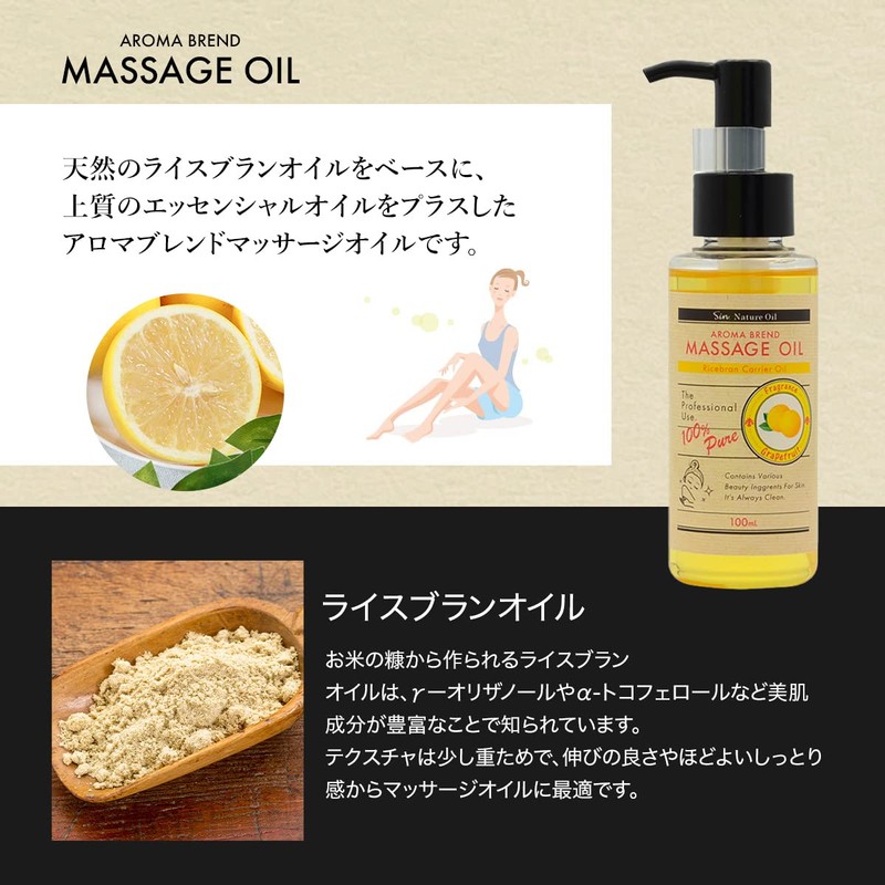 Aroma Oil, 3.4 fl oz (100 ml) (Base Oil: Rice Blanc Oil), Massage Oil, Carrier Oil, Body Oil (Grapefruit)