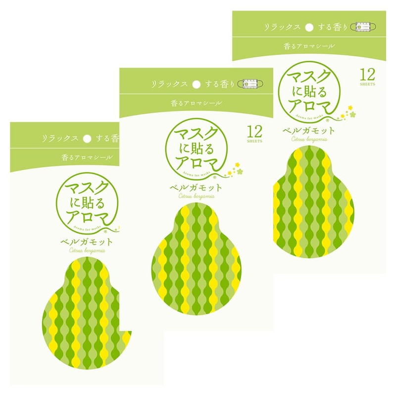 Aroma Scented Aroma Stickers for Masks (Bergamot Scent, Packaging Version (with Sticker Print), 12 Sheets x 3 Bags Set