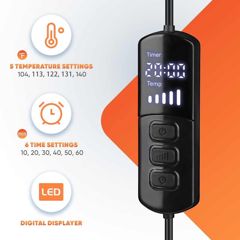 - 【Temperature and Time Control with Screen】Aroma Season heated ankle wrap features a temperature time controller with a digital display, allowing you to adjust the temperature and select the desired treatment time.The wrap provide 5 heating modes from 104°F to 140°F and 6 Time Levels from 10 to 60 minutes.
