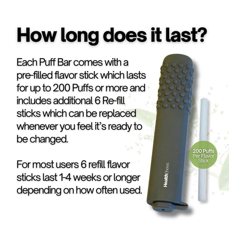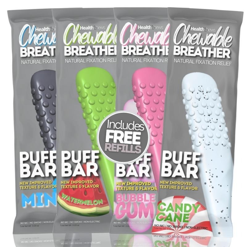 Health Chews PuffBar is the original chewable relief stick designed to help you quit vaping and smoking by satisfying oral cravings, freshening breath, and keeping your hands and mouth busy — all with the power of natural essential oils.