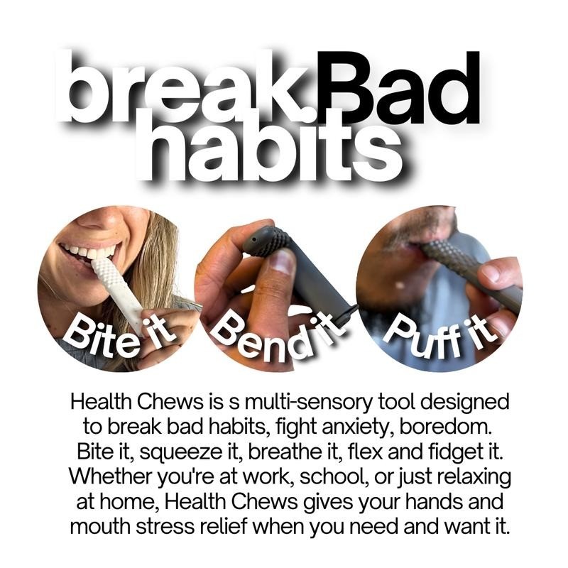 Oral Craving Relief: Chew, bite, or fidget to replace smoking/vaping urges.