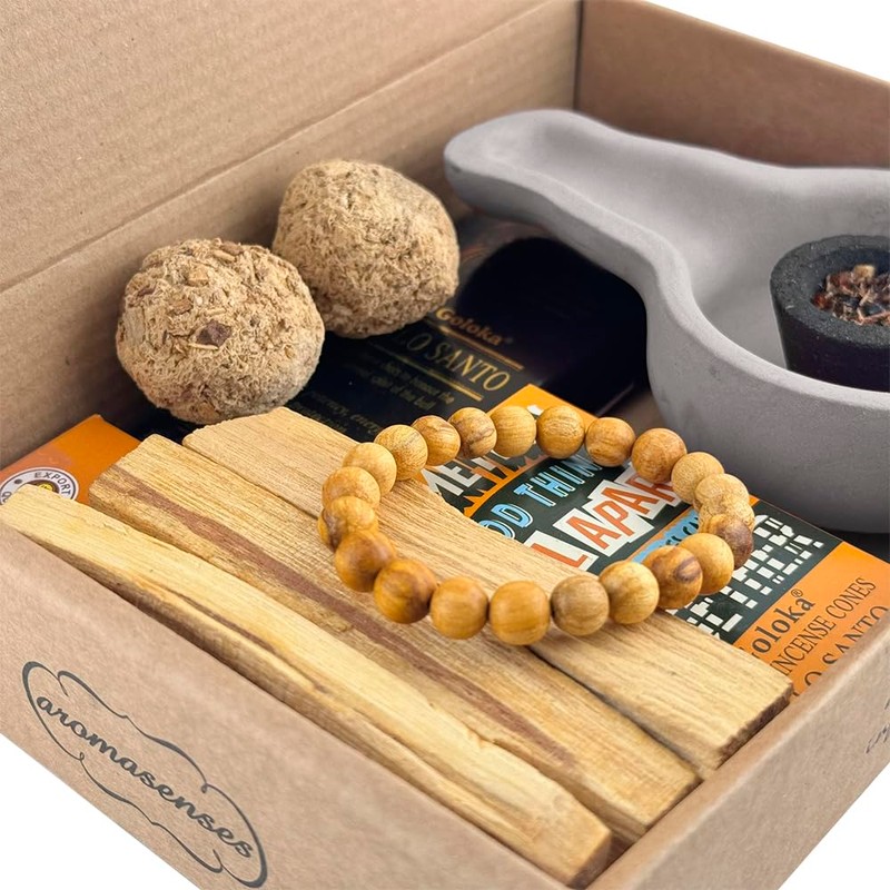 Aromasenses Palo Santo Palo Santo Natural Bracelet, Palo Santo Bracelet, Large Selection of Products by Palo Santo - Cleansing and Mental Wellbeing - Energy Cleanser (8 mm, Box 2)