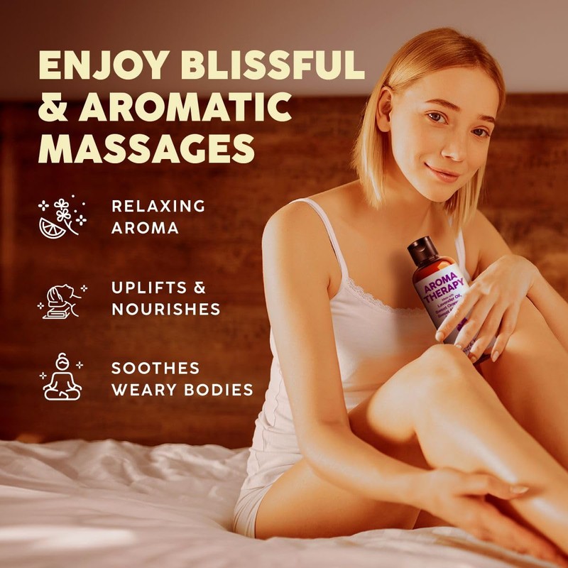 Aromatherapy Massage Oil 100ml - Deeply Moisturizing & Relaxing for Full Body Massage - Blended with Lavender, Orange Oil & More - 100% Natural Body Oils for Women & Men - Spa Quality & Light Weight