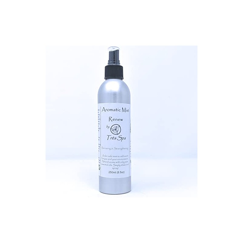 Aromatic Mist Renew by Tres Spa - Reviving & Strengthening - Woodsy Blend of Essential Oils | 100% Natural Vegan & Versatile | Skin Safe, Eco-Friendly, & Alcohol Free (250ml)