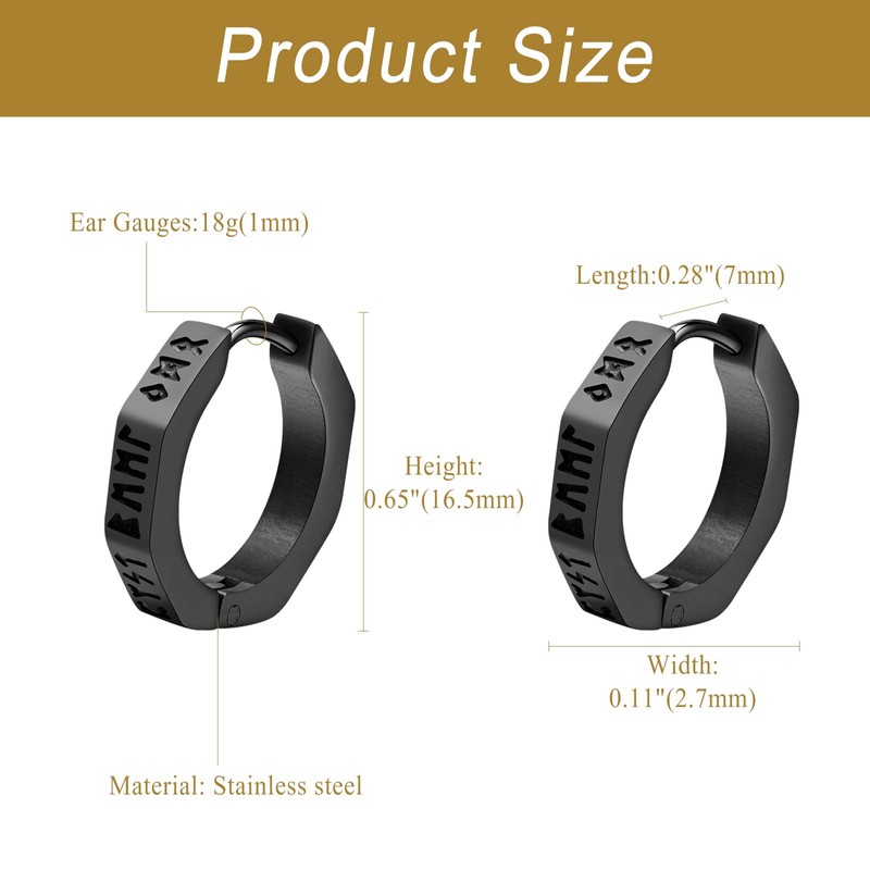- [UNIQUE VIKING RUNES DESIGN] These earrings feature ancient and mysterious Viking rune designs that add a retro and traditional touch to your style. The high-polished finish gives them a shiny and cool look. Viking runes hold significant meanings such as wealth, strength of will, prosperity, vitality, growth, joy, success, victory, and honor.