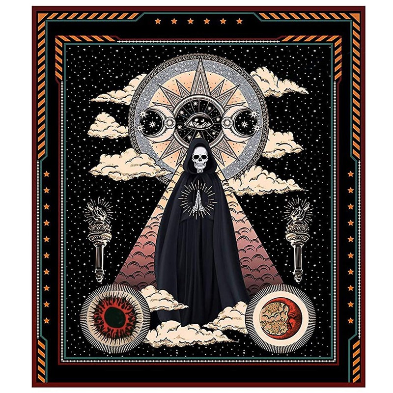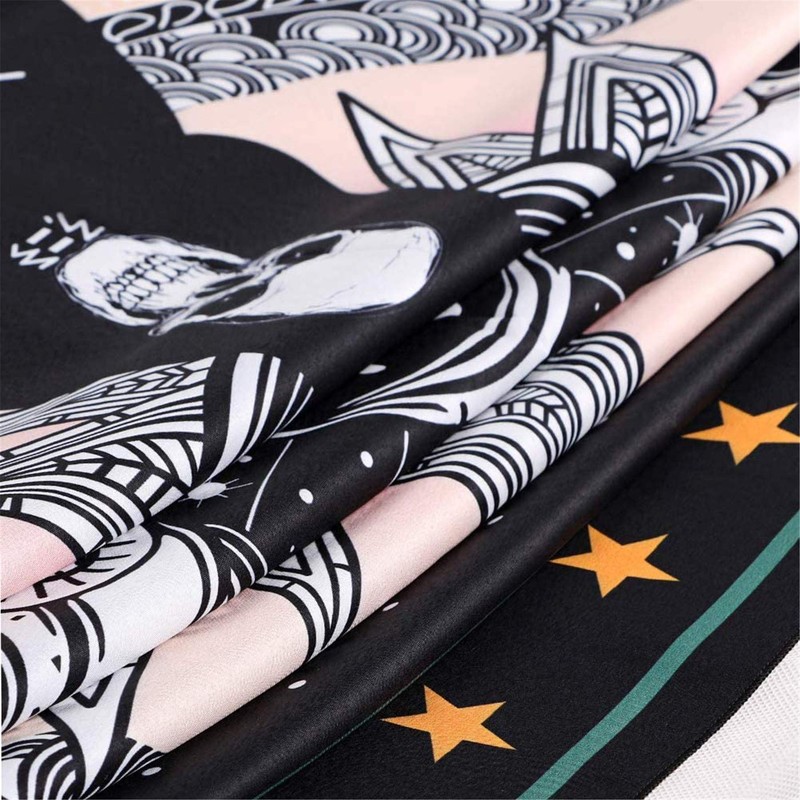 - With digital printing, environmentally friendly and odourless ink, bright colours, clear lines, magic skull, sun and moon, stars and clouds, chakras, tarot cards and other elements full of secrets and bring a new experience to the decorative room.