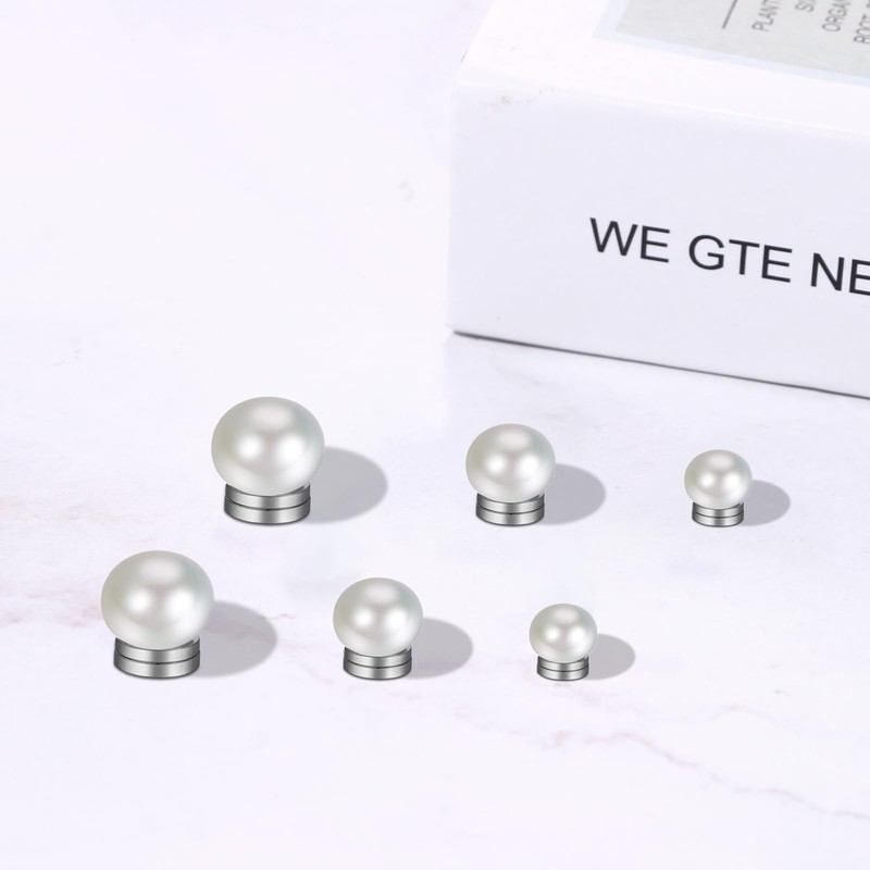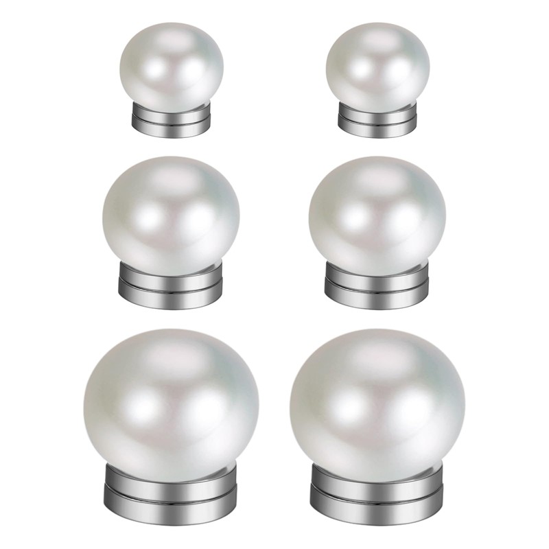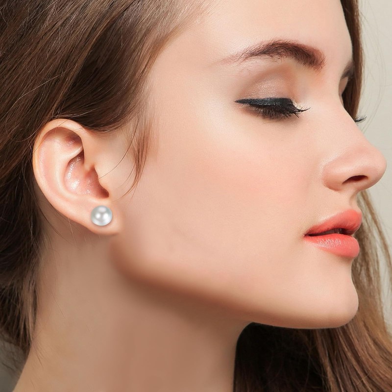 Aroncent Women's Pearl Magnetic Stud Earrings: 10 mm White Bread Beads Earring Non-Perforated Clip On Earrings, Resin