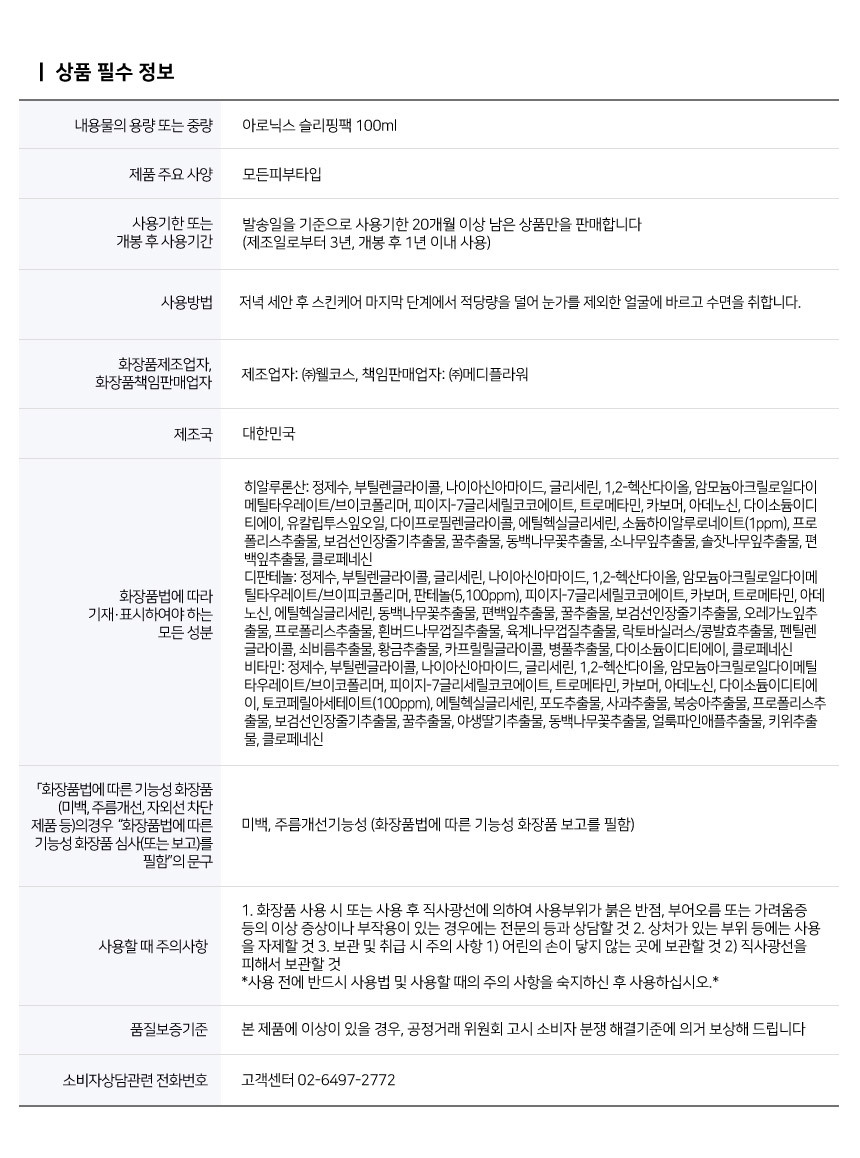 Aronics 디판테놀 시카 슬리핑팩 100ml x 2