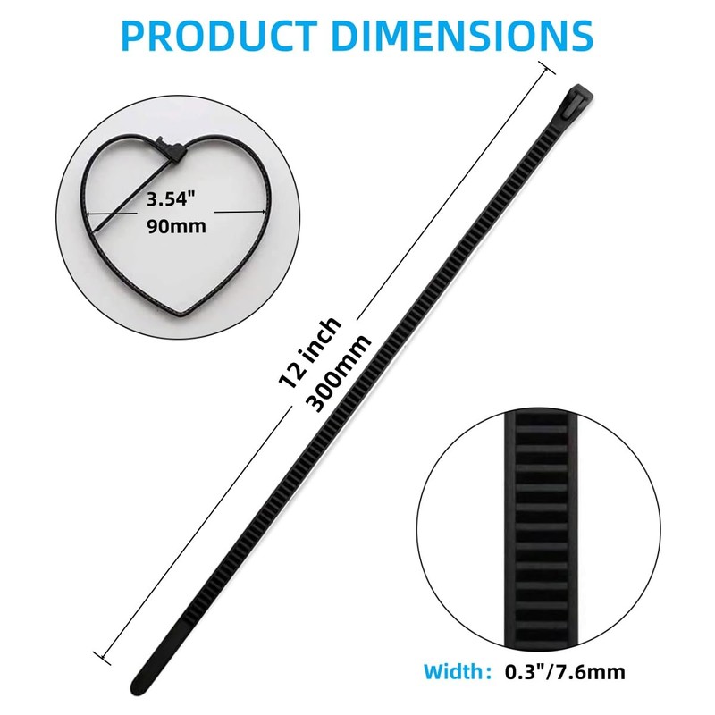 - 📌【Zip Ties Assorted Sizes】Our store offers a variety of colors and sizes to meet your needs. "What You Get - Pack of 100 pcs Aroono zip ties ( L: 300mm/12in, W: 7.6mm/0.3in, Color: Black)