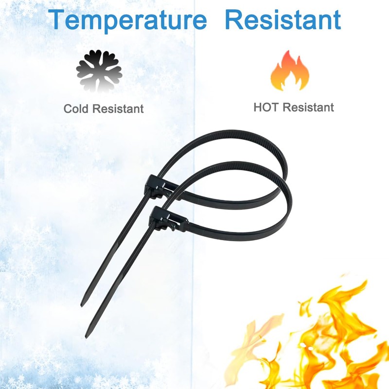 - 📌【Reusable Zip Ties with Quick-Release 】Adjust and reuse these heavy-duty ties endlessly with our easy-press lever - no cutting needed! Perfect for organizing cables, securing decorations, and DIY projects. The strong locking mechanism holds tight while allowing easy readjustment. Save money and reduce waste with these eco-friendly ties loved by professionals and homeowners.