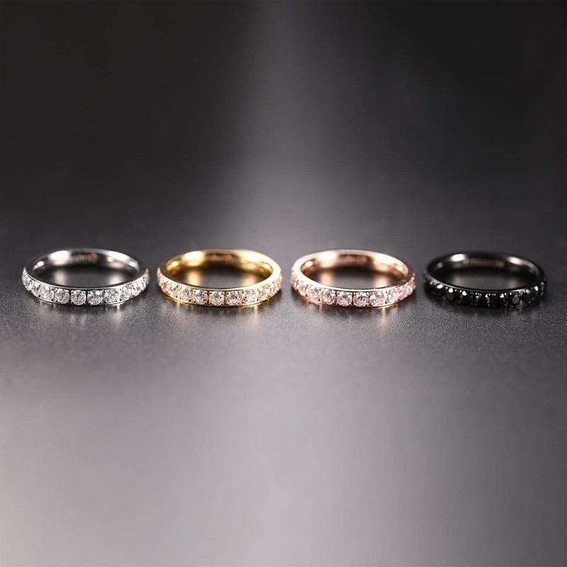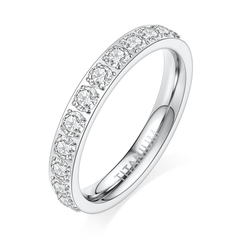 AROWRO 3 mm Women's Titanium Eternity Ring Cubic Zirconia Engagement Anniversary Ring Wedding Ring Size 5 to 10, Titanium, Cubic Zirconia