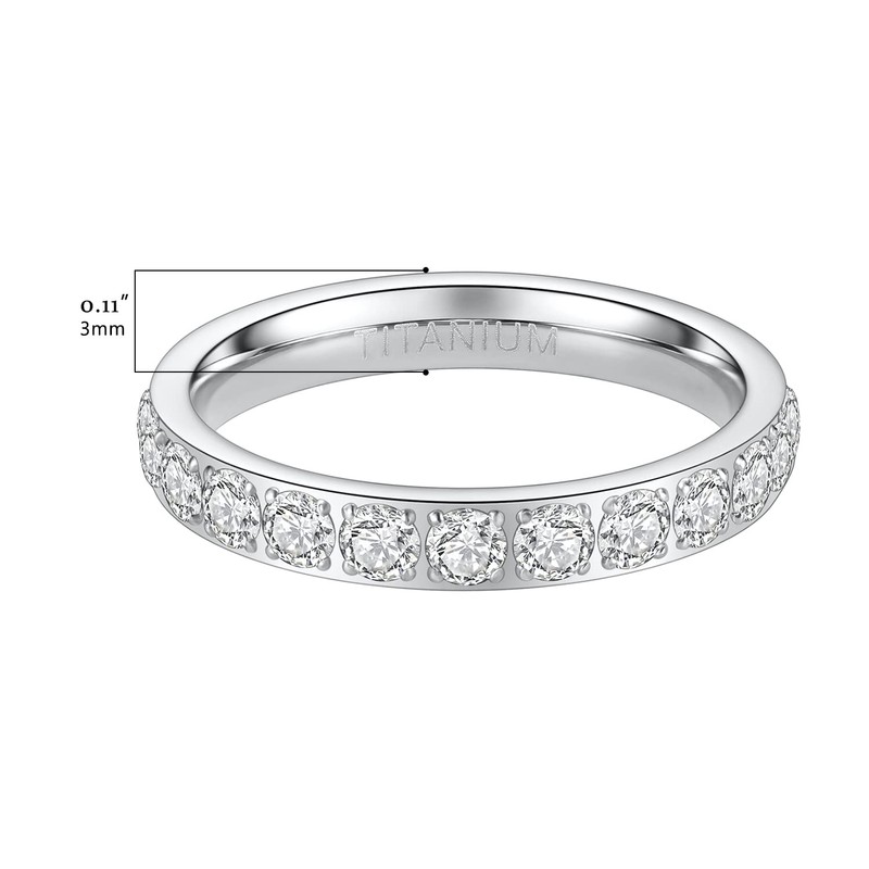 AROWRO 3 mm Women's Titanium Eternity Ring Cubic Zirconia Engagement Anniversary Ring Wedding Ring Size 5 to 10, Titanium, Cubic Zirconia
