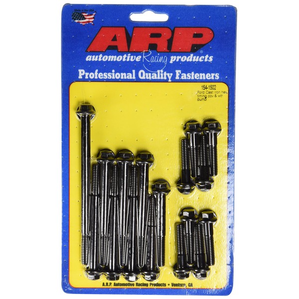 To maintain a reputation for "zero defects", ensure optimum quality control, and produce fasteners of exceptionally high quality, ARP controls all aspects of the manufacturing process, performing all operations in-house where they can be closely monitored. This timing cover and water pump bolt kit is a good example of how ARP takes extraordinary steps to produce the very finest products of their kind on the market today. These bolts are manufactured from black oxide finished 8740 chrome moly steel, which is rated at 170,000 psi. They feature traditional hex style heads and come complete with high quality washers.