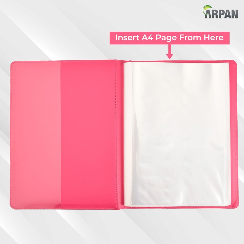 Arpan 48 Pockets 96 Sides A4 Presentation Folder Document File Folder Display Book Portfolio Professional Conference Folder Faux Leather (Pink)