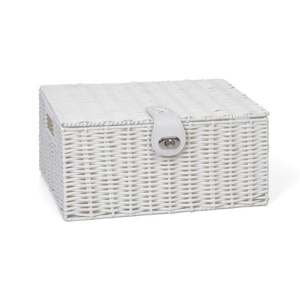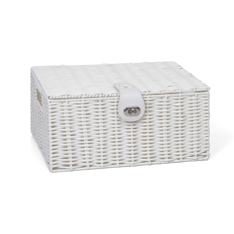 Arpan Medium Resin Woven Storage Basket Box with Lid & Lock - White