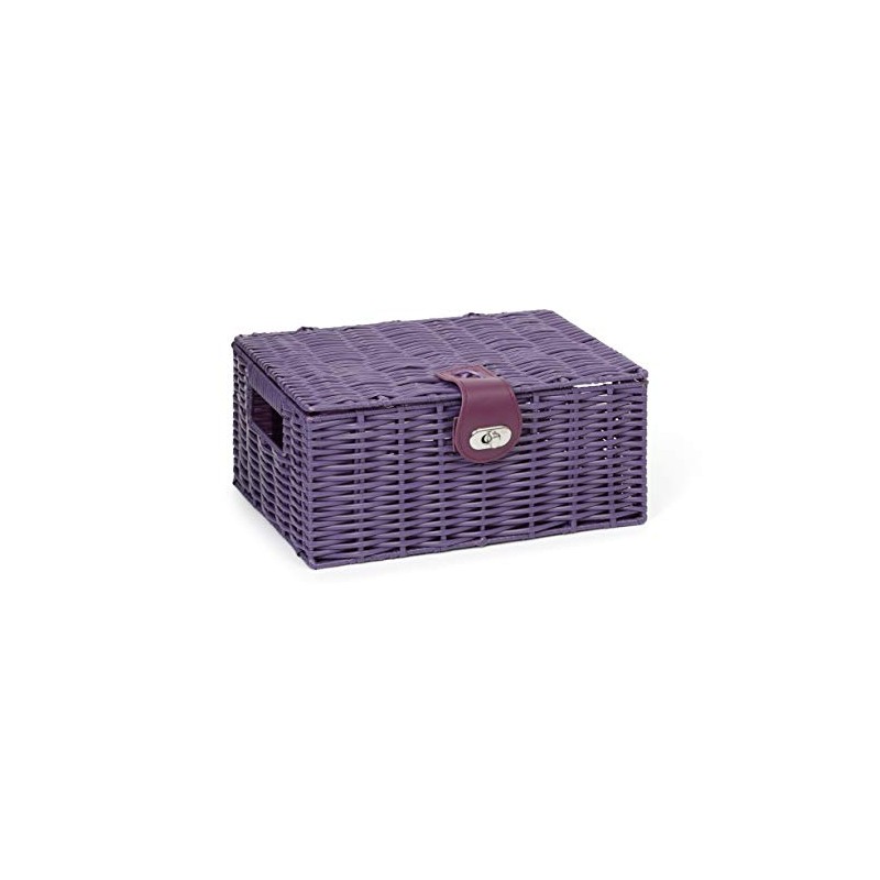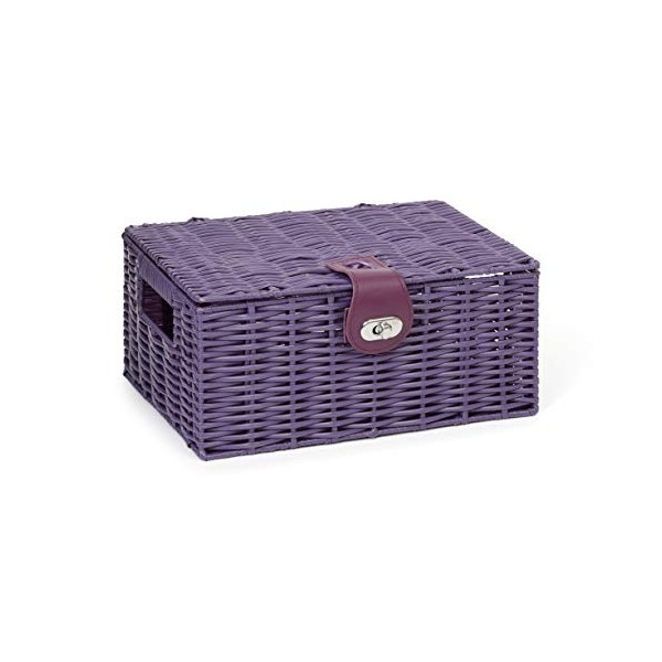 ARPAN Small Resin Woven Storage Basket Box With Lid & Lock - Purple