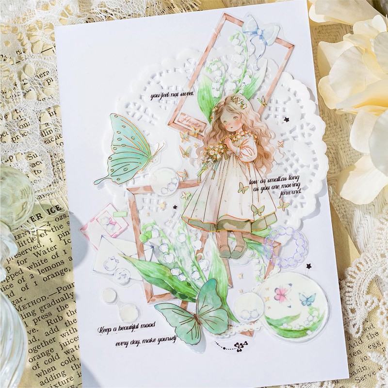 - This is a flake sticker set made of PET material that is animated. The various girls' illustrations are cute and you will be wondering which one will use. It has a calm atmosphere, perfect for decorating your smartphone or notebook