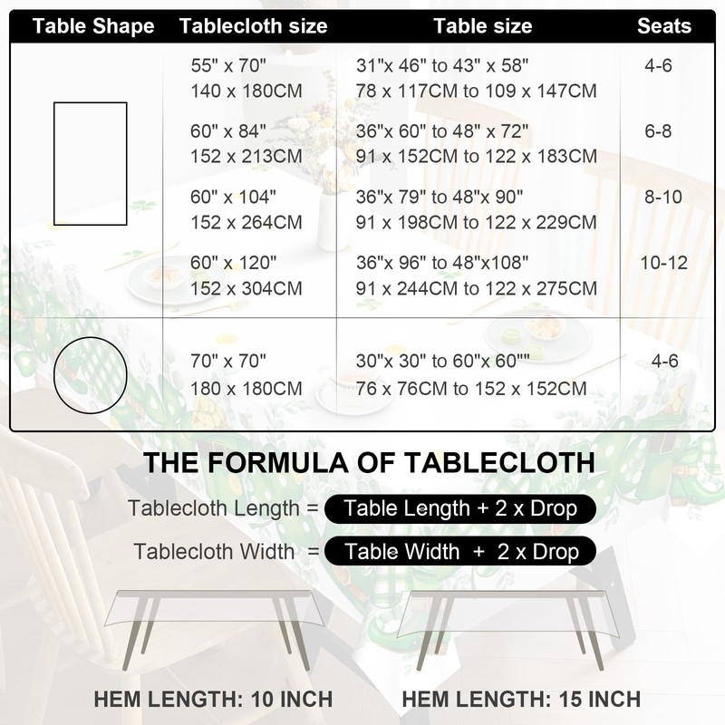 - SIZE GUIDE: Please measure the size of the table carefully before purchasing and refer to the size chart to choose the suitable tablecloth