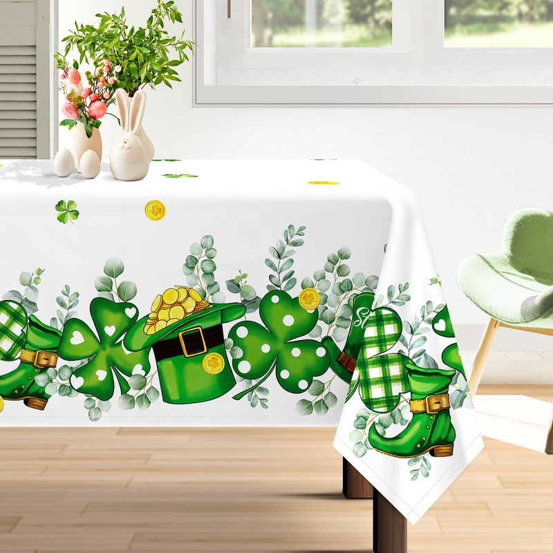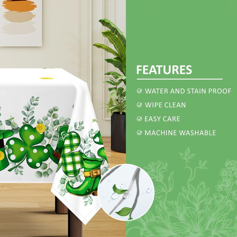 Arquiel St. Patrick's Day Shamrock Tablecloth Waterproof, Spring Green Table Cloth Rectangle Stain Resistant, Washable Table Cover for Home Kitchen Dining Party Decoration (60×120 Inch)
