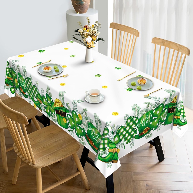 Arquiel St. Patrick's Day Shamrock Tablecloth Waterproof, Spring Green Table Cloth Rectangle Stain Resistant, Washable Table Cover for Home Kitchen Dining Party Decoration (60×120 Inch)