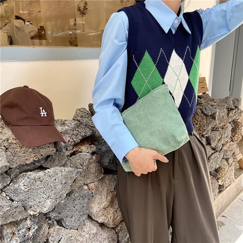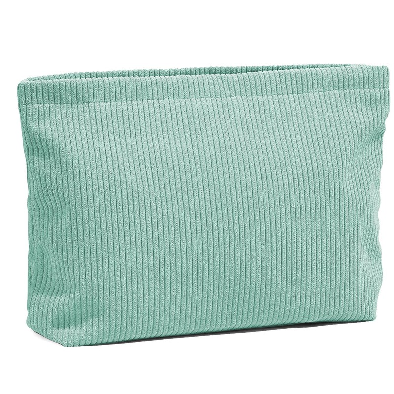 ArranVolver Corduroy Travel Makeup Bag for Women, Cosmetic Pouch with Metal Zipper, Makeup Brush Organizer Bags (Solid Green)